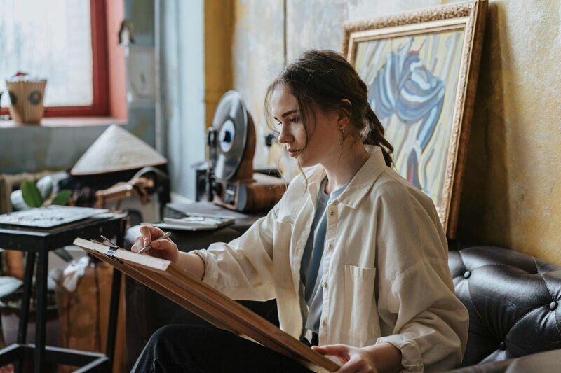 I paint to folk records and rainy-day playlists.